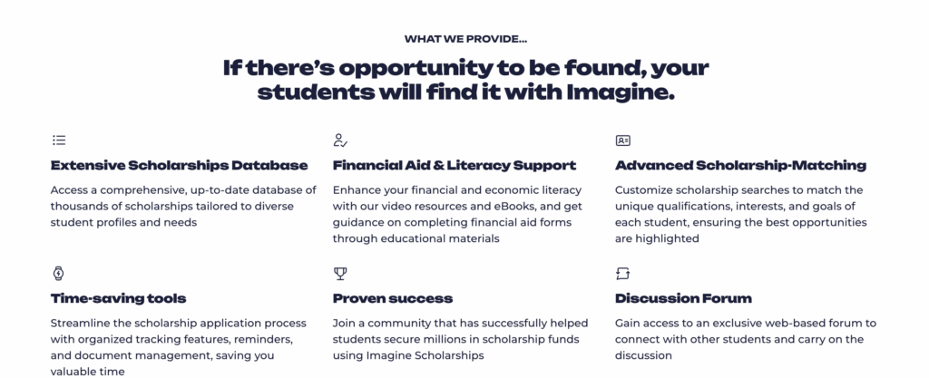 Imagine Scholarships Subscriptions – We have over 10,000 Trio Students we already work with, won’t you come join us ? See Video below for a demonstration. We can have your group up and running in 24 hours or less.